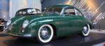 På den anden side af glasvæggen står endnu et par bilperler, blandt andet en Porsche 356 i grøn med klistermærker i sideruden fra Classic car løb og træf.