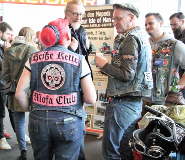 Her er det ekstra sjovt at gå rundt, fordi en del af udstillerne er kommet i tidstypisk 1970’er tøj. Der er cowboyveste med rygmærker, spidse støvler og masser af lir, der omgiver de enormt velplejede 50 kubikkere.