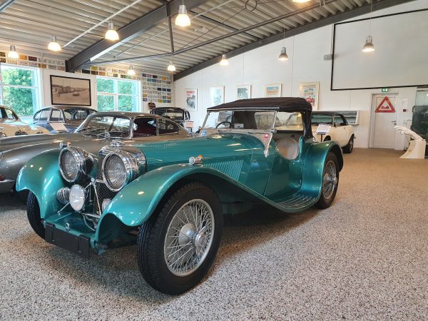 En række Jaguarer tager næsten vejret fra mig. Der er en Jaguar D-type, som tydelig bærer præg af at være brugt. Ikke slidt, men med patina, klistermærker i vinduet fra deltagelse i ture og løb. Det samme har C-typen. Der er både en Jaguar Mark I og en Mark II, en SS100 og selvfølgelig er der også en E-Type, der med sine klassiske linjer, den lange (meget lange) kølerhjelm og trådhjulene, får drømmene om lange ture langs Amalfi-kysten til at udspillede sig i mit hoved. Der er nok at drømme om, mens jeg langsomt bevæger mig rundt mellem de mange biler.